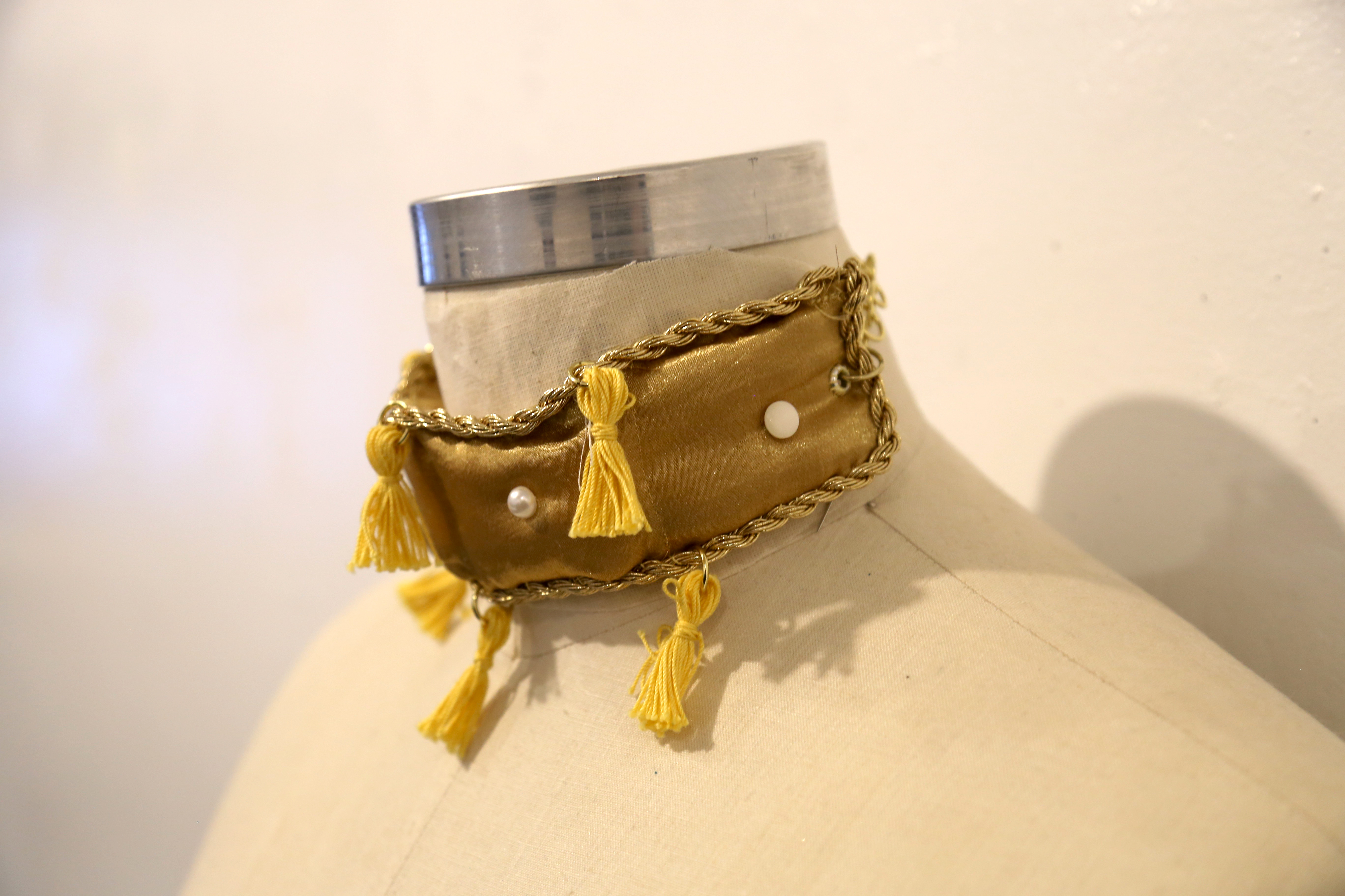 Images 1 and 2: Because I’m always tired, choker, 2018, Fabric scraps